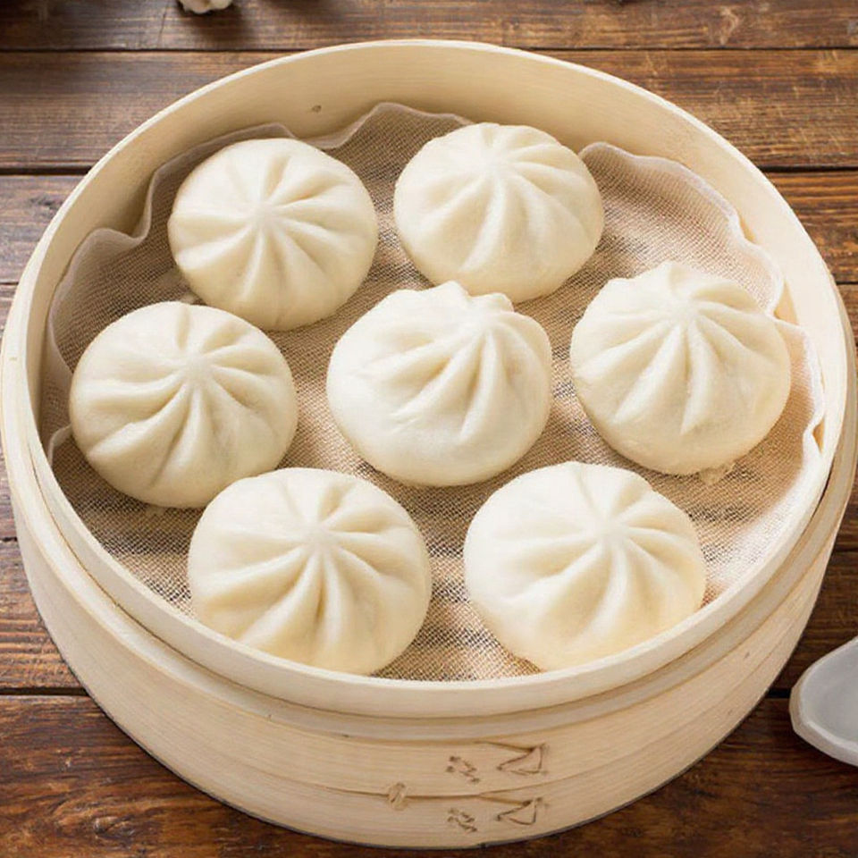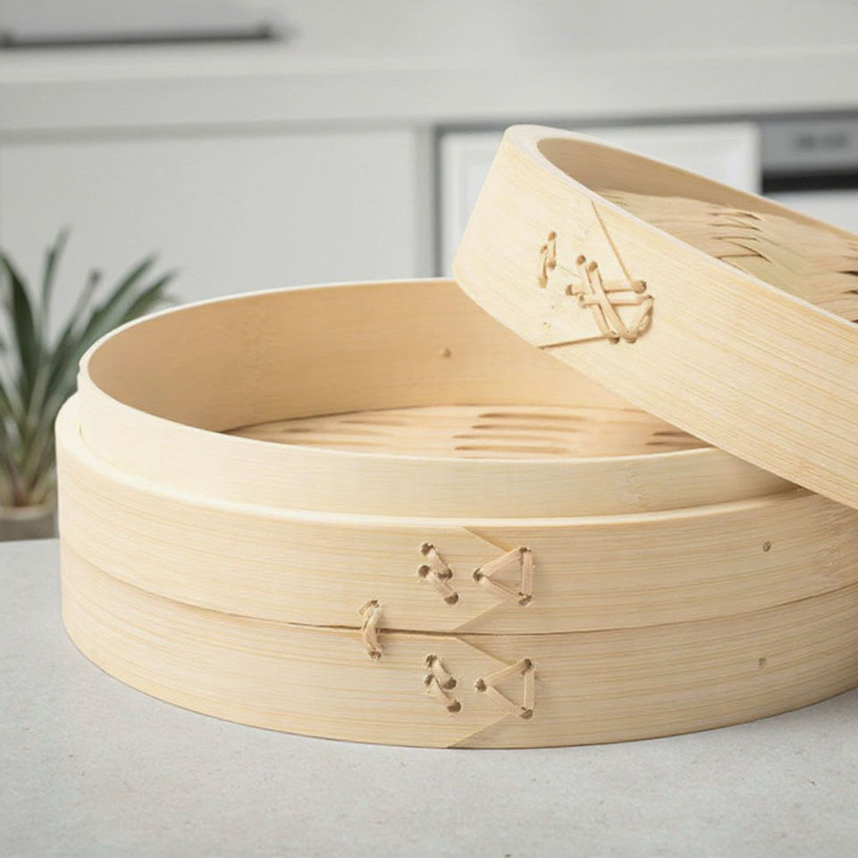 Chinese Tall 10 Inch Bamboo Vegetable Steamer Set Wooden Wholesale Handmade Cooker Yellow with Handle for Dumpling Dim Sum