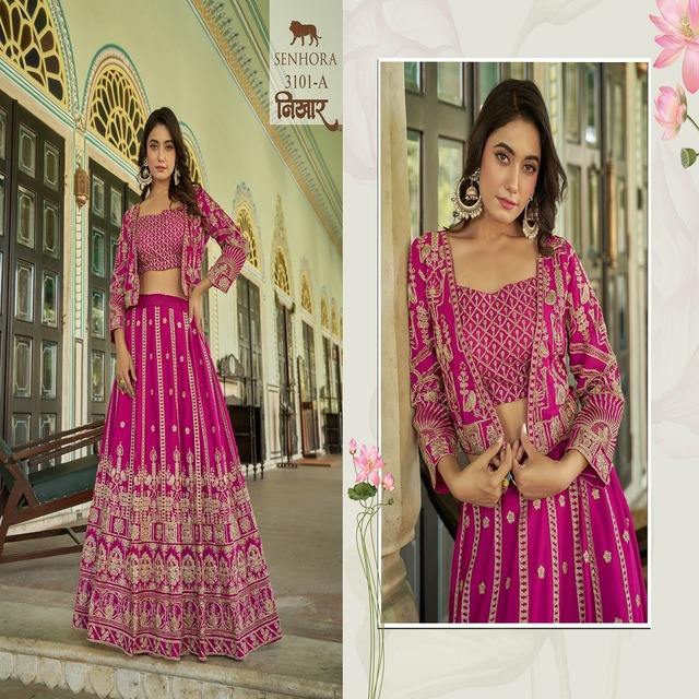 Chinon Embroidered Indo Western Jacket Style Blouse Sequin Work Stylish Traditional Drapes for Festive Elegance Lehenga Choli