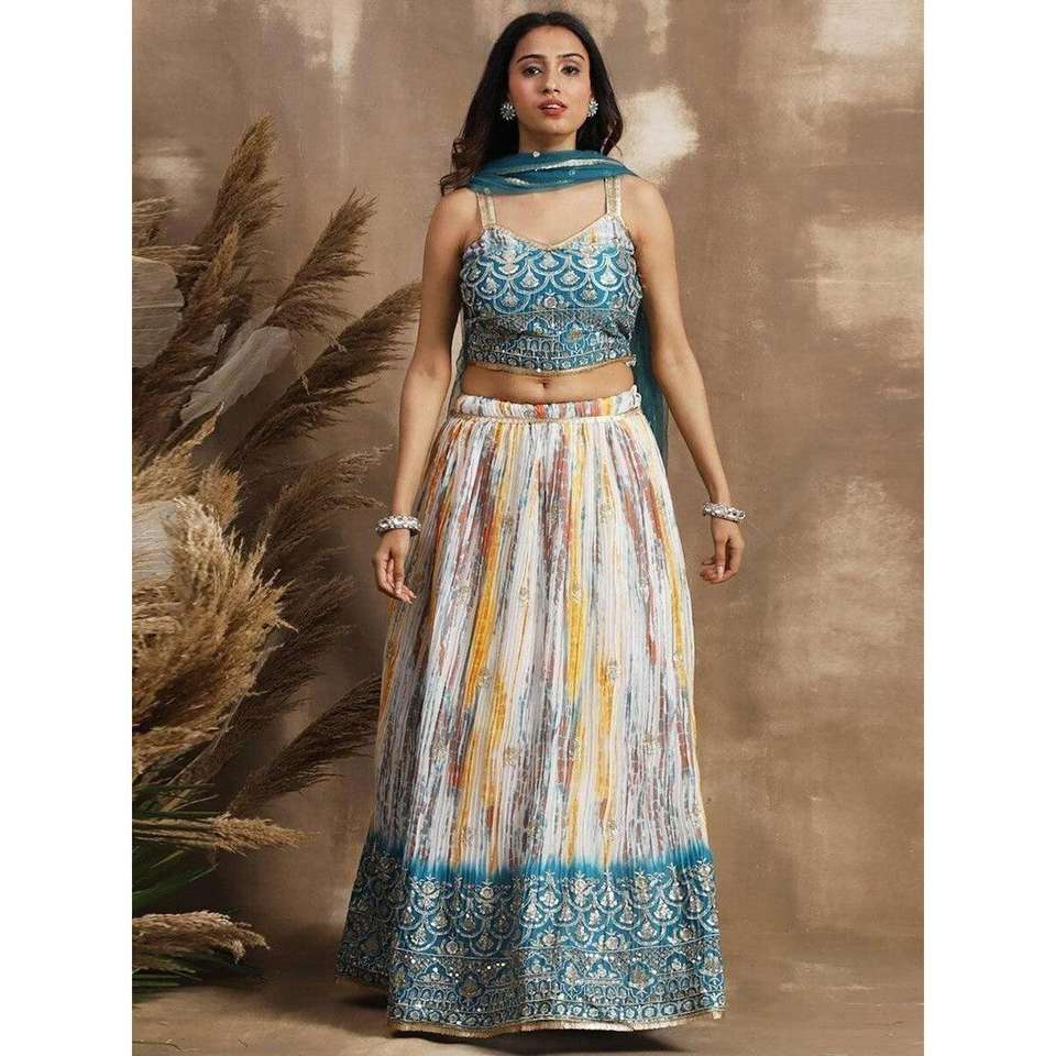 Chinon Festive Wear Lehenga Choli with White & Blue Sequins Pleasurable Dresses