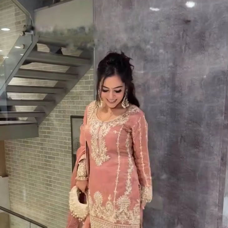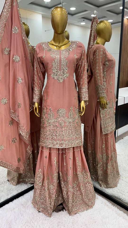 Product Name:Chinon Silk Sequence Embroidery Top Sharara With Dupatta