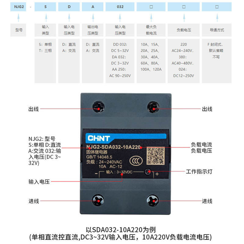 Chint NJG2-DA/AA/DD Small 24V DC Control Single-Phase 40A Solid State Relay Single-Phase SSR
