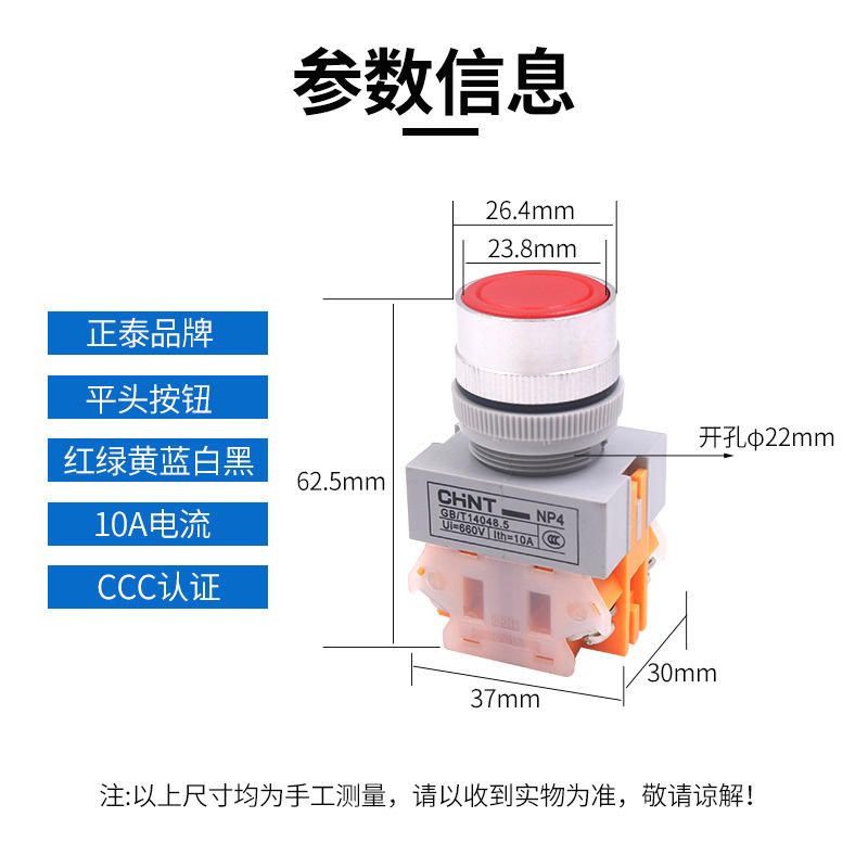 Chint NP4-11BNZS Self-Locking 22mm Flat-Head Power Start/Stop Push Button Switch with Yellow-Green-Red LED Lights