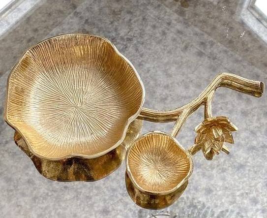 Chip and Dip Bowl with Lotus Flower Design for Home Hotel Restaurant Tabletop Bowl Gold Color Dry Fruits Chocolate Serving Bowls