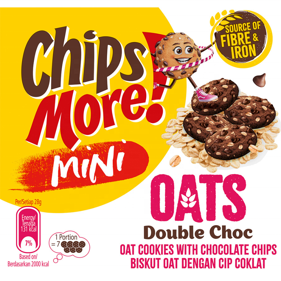 Chipsmore Mini Double Chocolate Oats Biscuits 80g Hard Sugar Sweet Taste Box/Carton Wholesale Packaging Rolled Baking Process