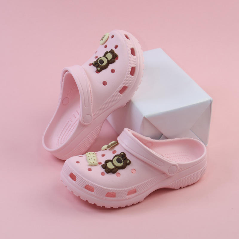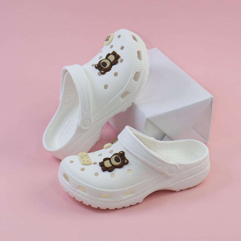 Chocolate Bear Crocs Clogs For Women White Non Slip Soft Sole Beach Sandals Four Seasons Wear