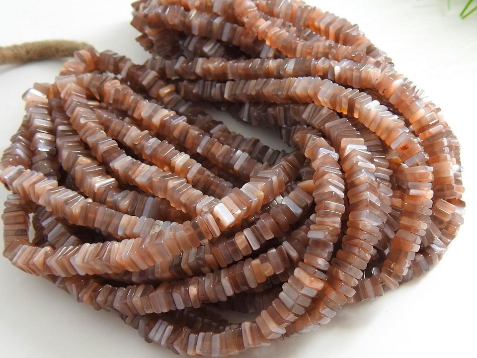 Chocolate Brown Moonstone Heishe Square Bead Smooth Polished Cushion Loose Stone Crystal Jewelry Making Strand Natural Stone