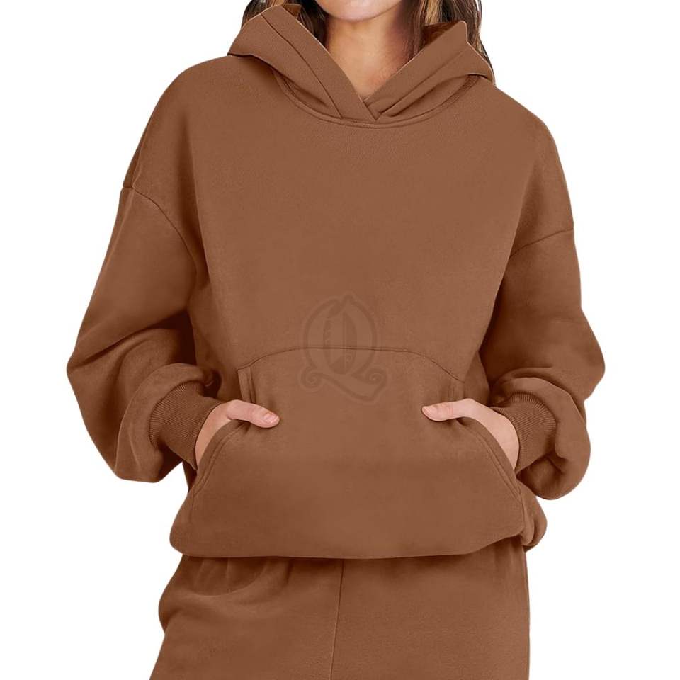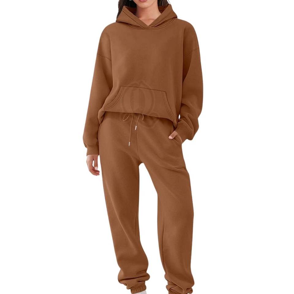 Chocolate Brown Tracksuit Women Heavyweight Fleece Oversized Hoodie Jogger Pants Set Custom Streetwear