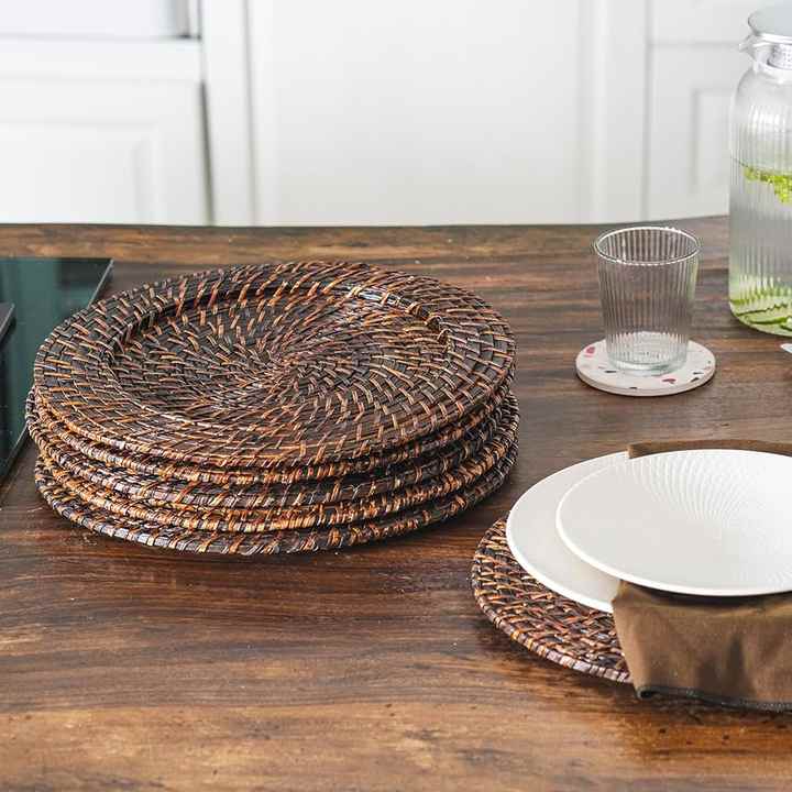 Chocolate Color Rustic Rattan Charger Plate 33inch Handicraft Vietnam Decoration Hotel Home Kitchen Best Price for Wholesale