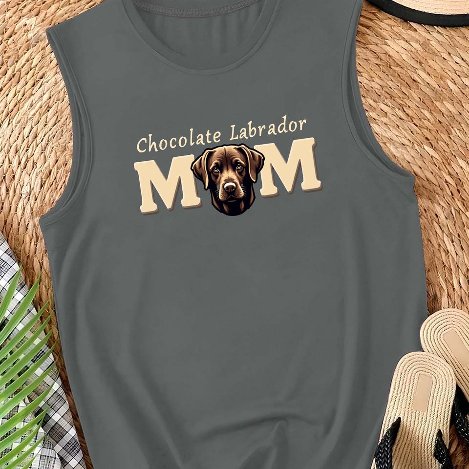 Women's Casual Chocolate Labrador MOM Vest Knitted Spandex/Polyester Fabric Crew Neck with Front Logo