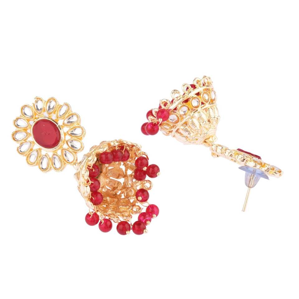 Choker Necklace Set Faux Pearl Beaded Layered Crystal Bridal Wedding Jewellery Jhumka Earring With Maang Tikka Set,Maroon Color