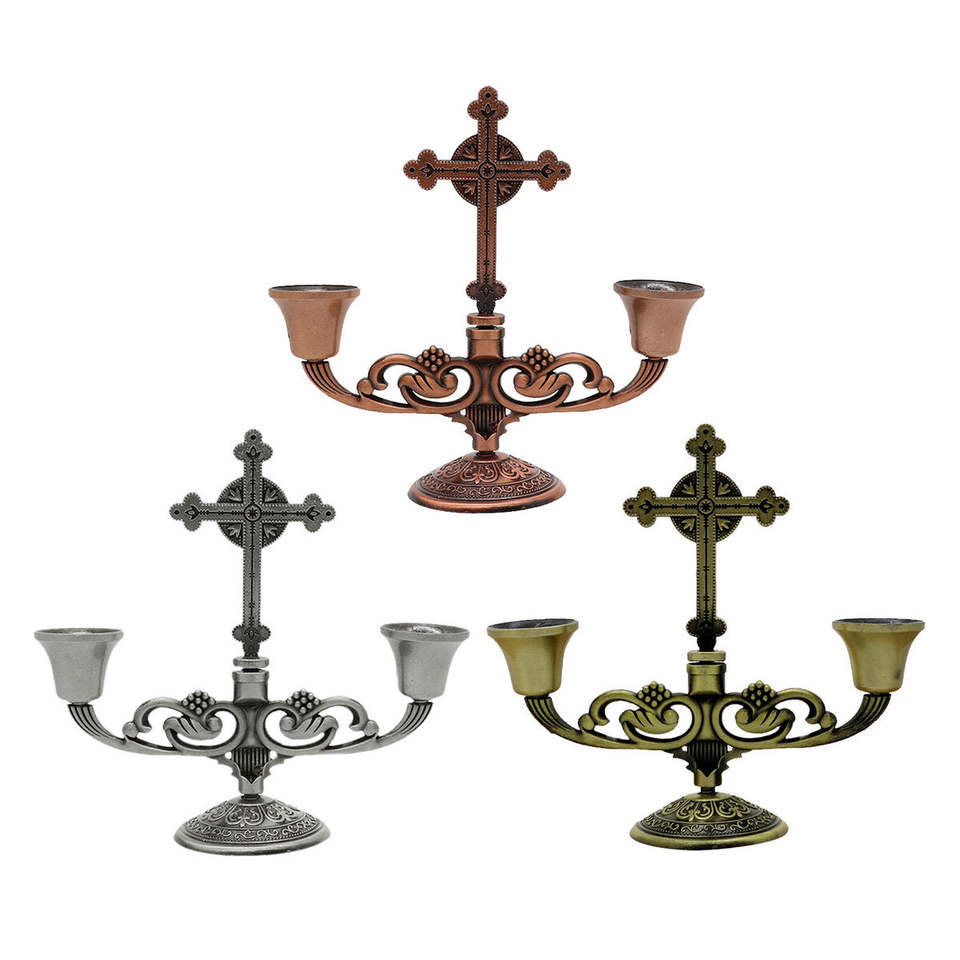 Christian Cross-Engraved Vintage Candle Stick Holder Religious Christmas Home Decor Church Centerpiece Custom Logo At Low Price