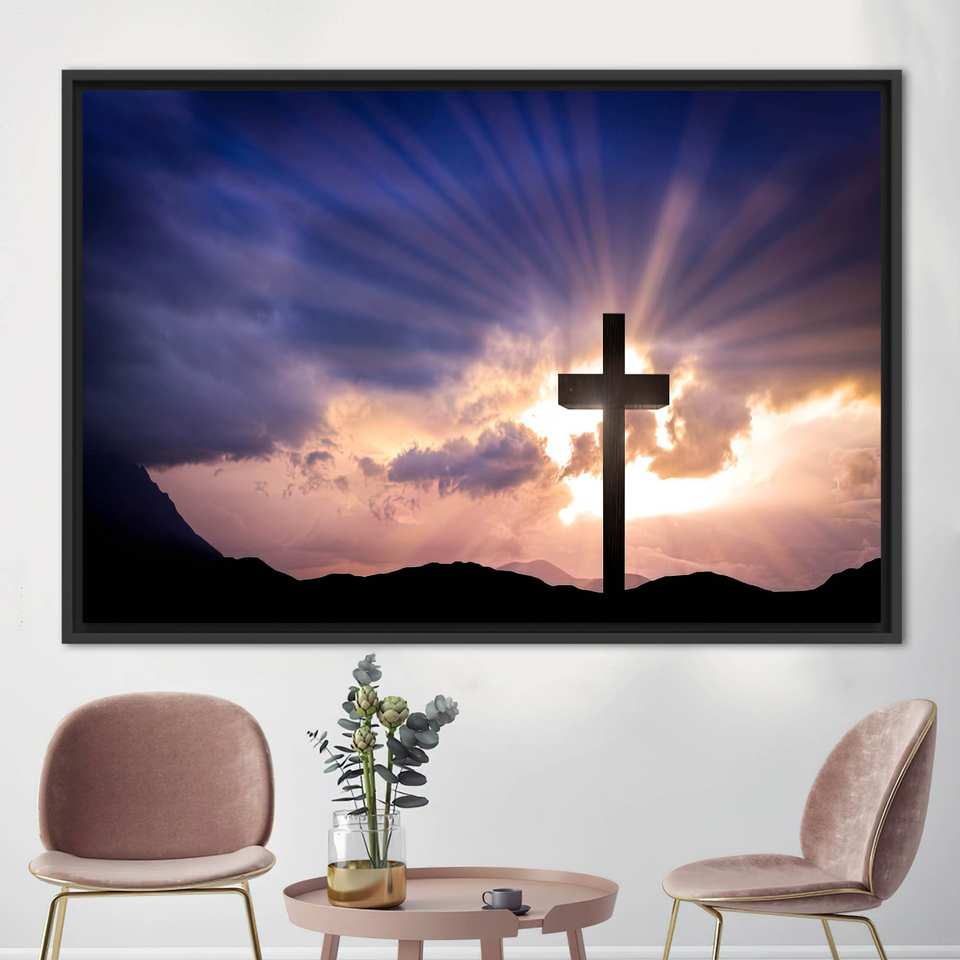 Christian Cross Jesus Christ Resurrection Art Canvas Print - Elegant Home Decor,1P:Black Framed