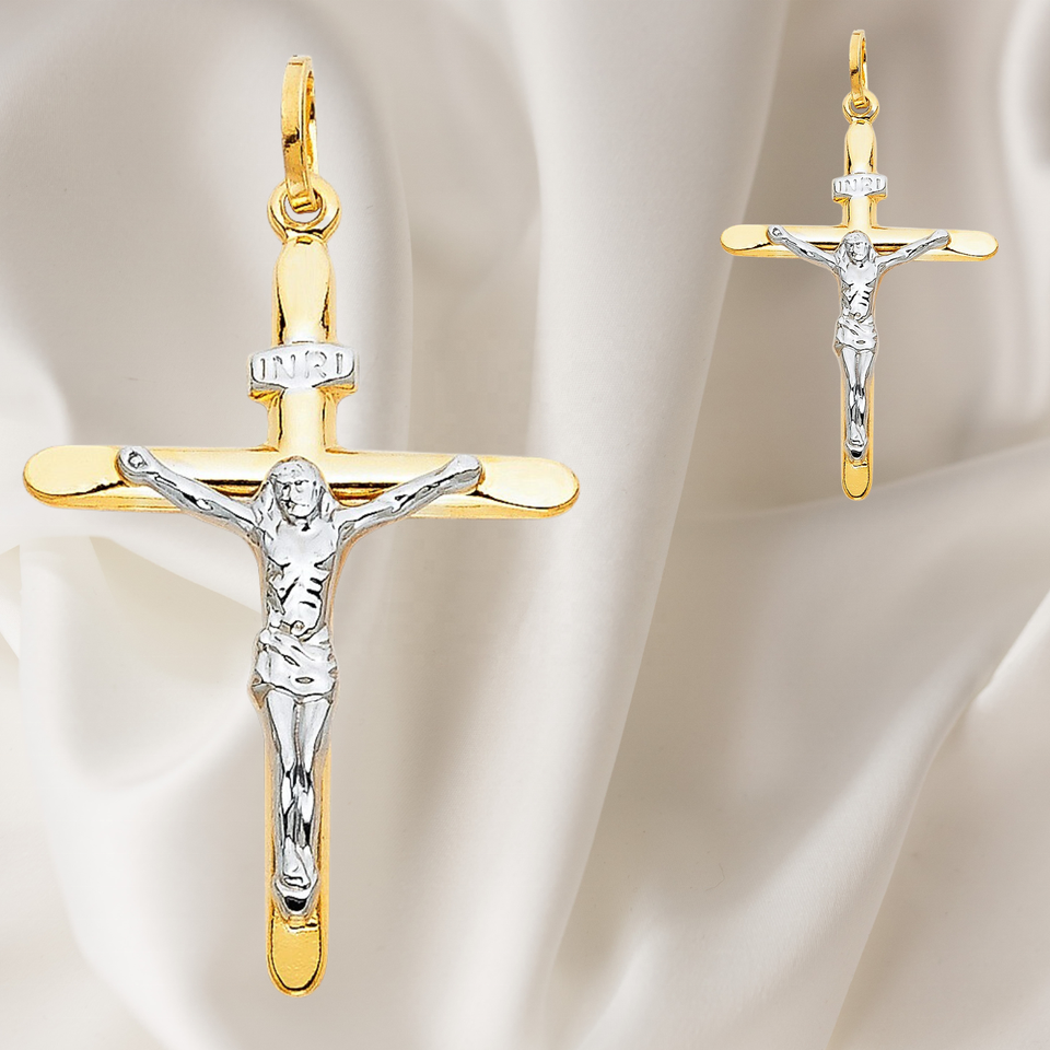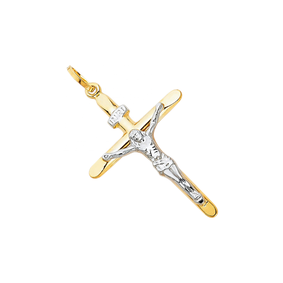 Christian Two Tone Plated High Quality 14K Gold Jesus Cross Pendant with Silver Plating for Men/Women & Customization