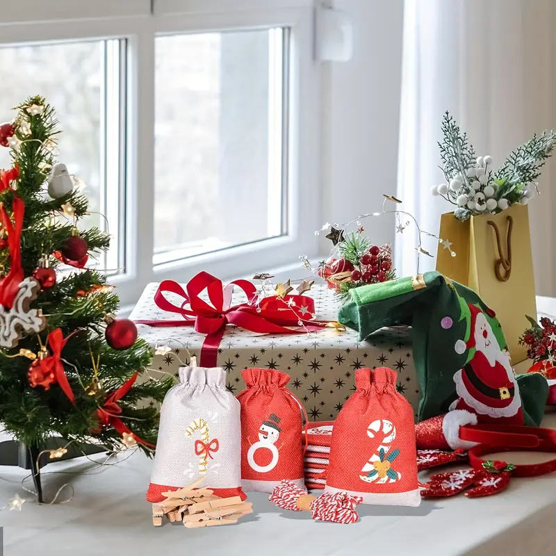 Christmas 24 Day Advent Calendar DIY Xmas Countdown Decorations Burlap Hanging Garland with Candy Gift Bags Christmas Deco