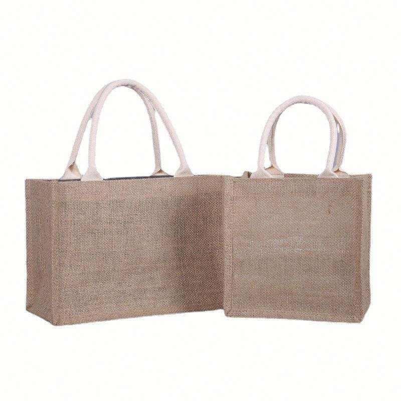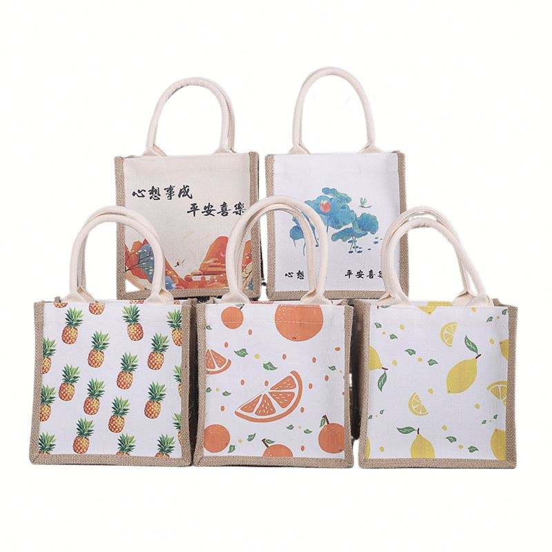 Christmas Beach Burlap Jute Hessian Shopping Tote Bag Handbags With Leather Handles