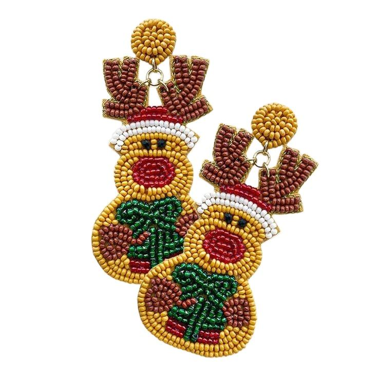 Christmas Beaded Earrings Christmas Themed Beaded Jewelry Reindeer Earrings Holiday Season Jewelry Secret Santa Gift