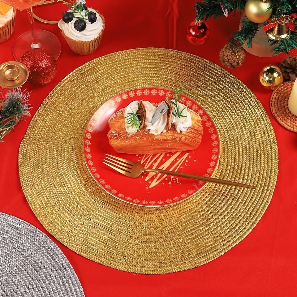 Christmas Color Matching PP Shiny Silk Placemats Tabletop Anti-scald Decorative Mats Premium Feeling Christmas Accessory Mats