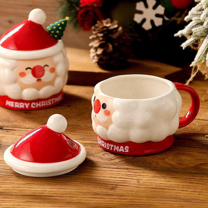 Christmas Creative Santa Claus Mugs with LIDS, Spoons, Home Cute Ceramic Cups