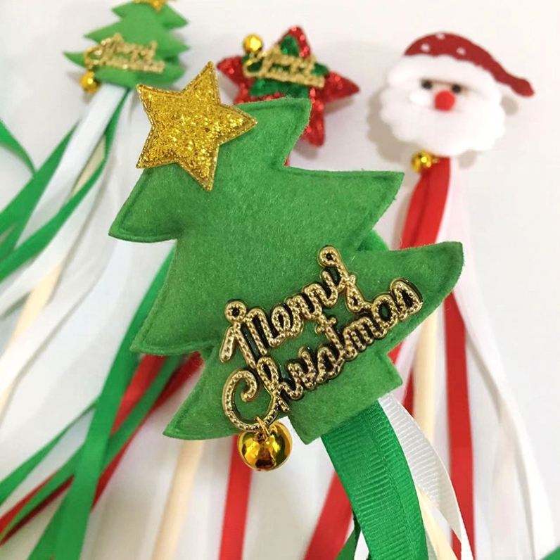 Christmas Cute Fairy Stick Santa Claus Christmas Tree Star Shape With Ribbon Sequin Fairy Wand