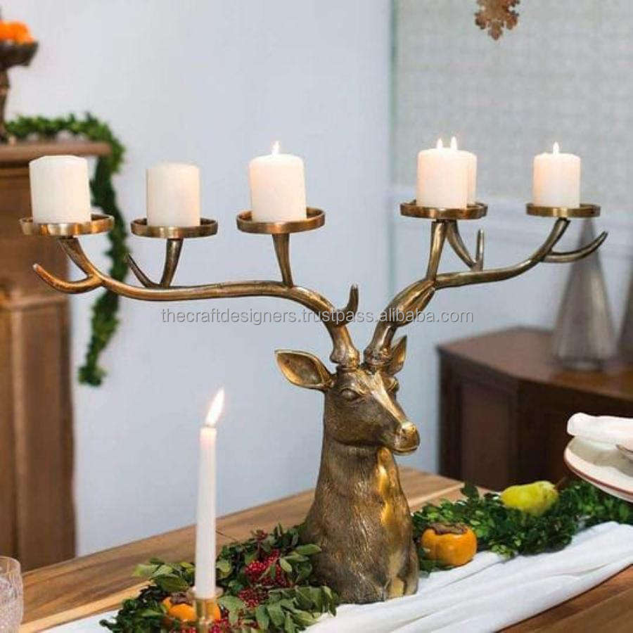 Christmas Decor Casted Dear Head Fruits Bowl Handmade Solid Reindeer With Large Antler Stylish Wine Cooler Fruits Bowl Showpiece
