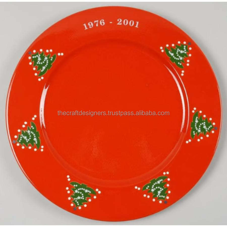 Christmas Decor Metal Round Dish High Enamel Charger Plate Table Decoration Food Dessert Items Serving Round 13" Plates For Gift