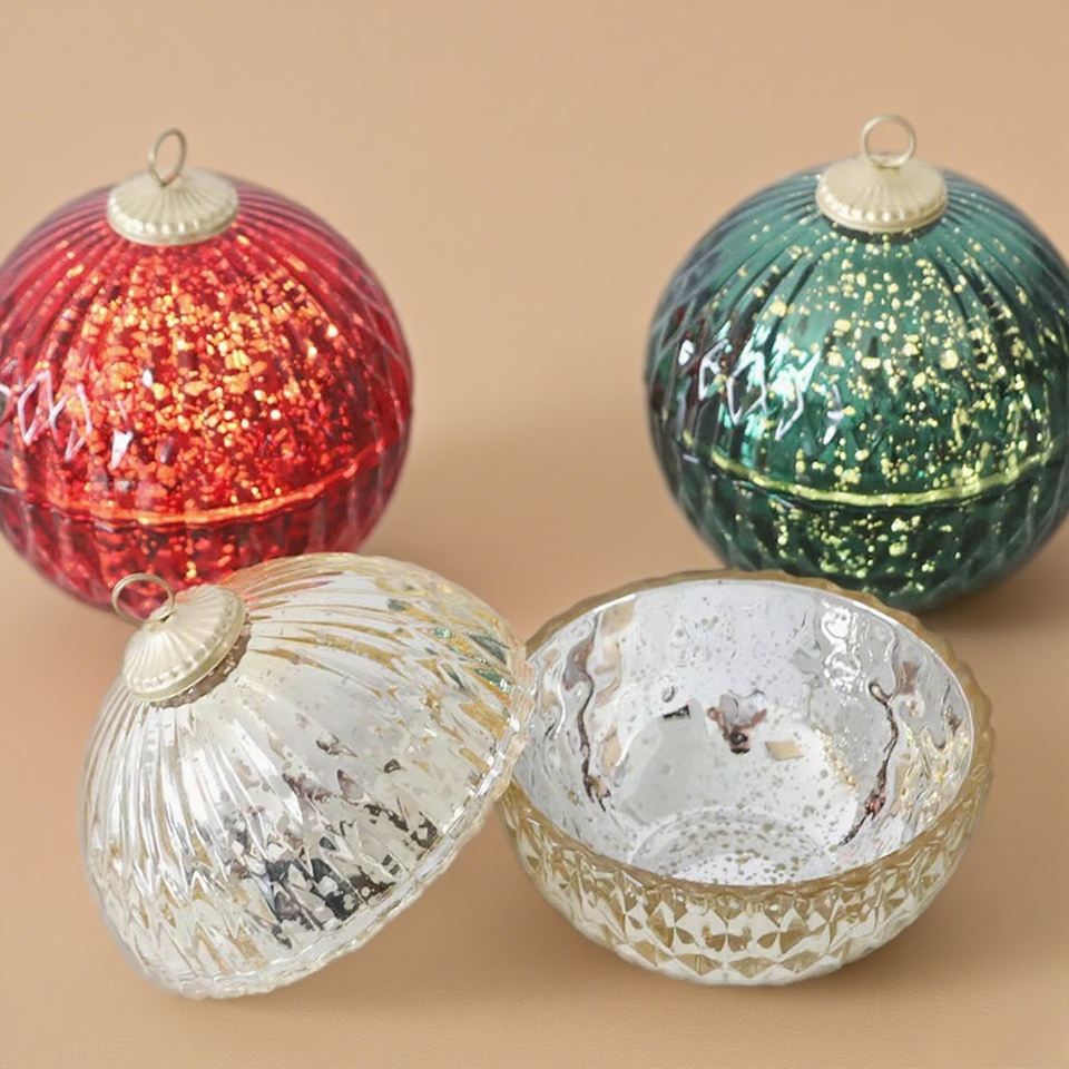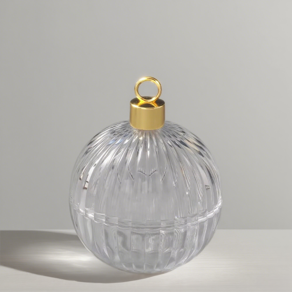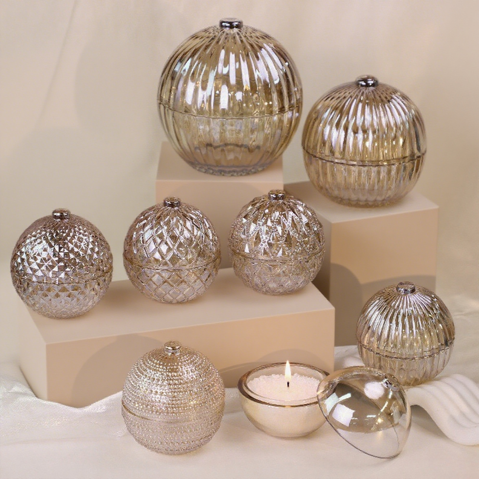 Christmas Decoration Luxury Scented Glass Candle Containers Ball Shaped Candle Holder Blue Red Unique Candle Jars with Lid