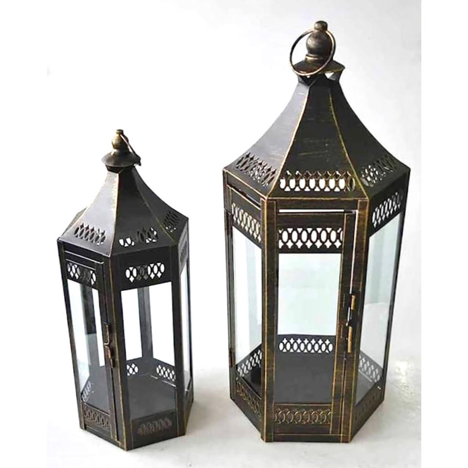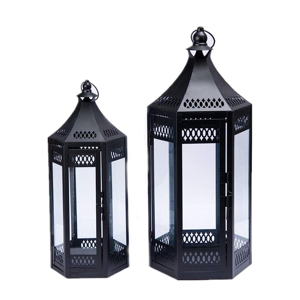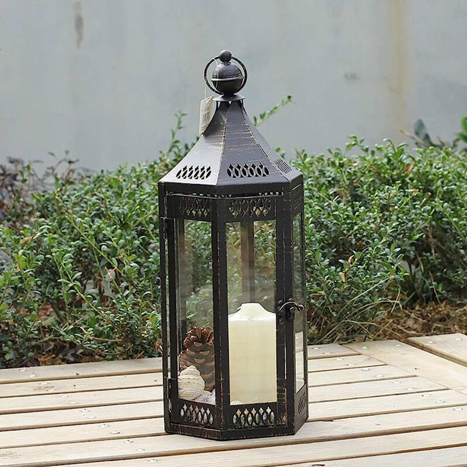 Nordic Style Black Antique Glass Large Metal Candle Pillar Holder Home Decor Garden Christmas Lanterns and Candle Jars