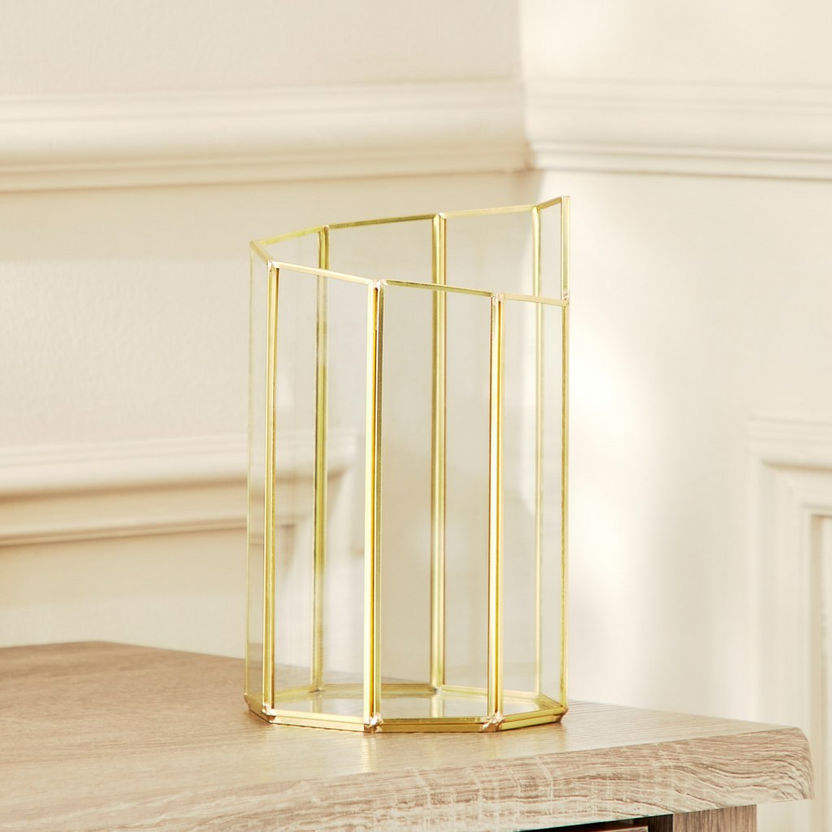 Gold Rim Glass Lantern with Iron Candlestick Holder Festive Home Decorative Table Centerpiece for Christmas