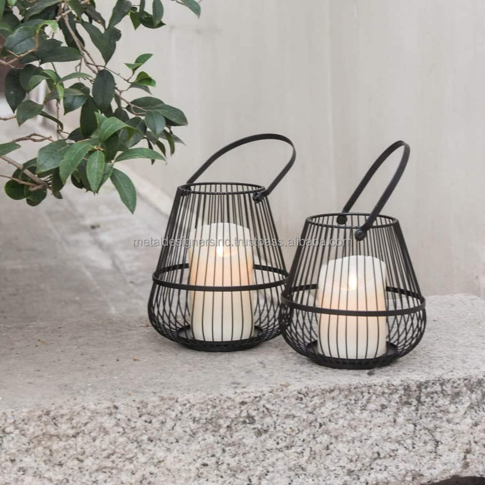 Iron wire lantern look candle holders