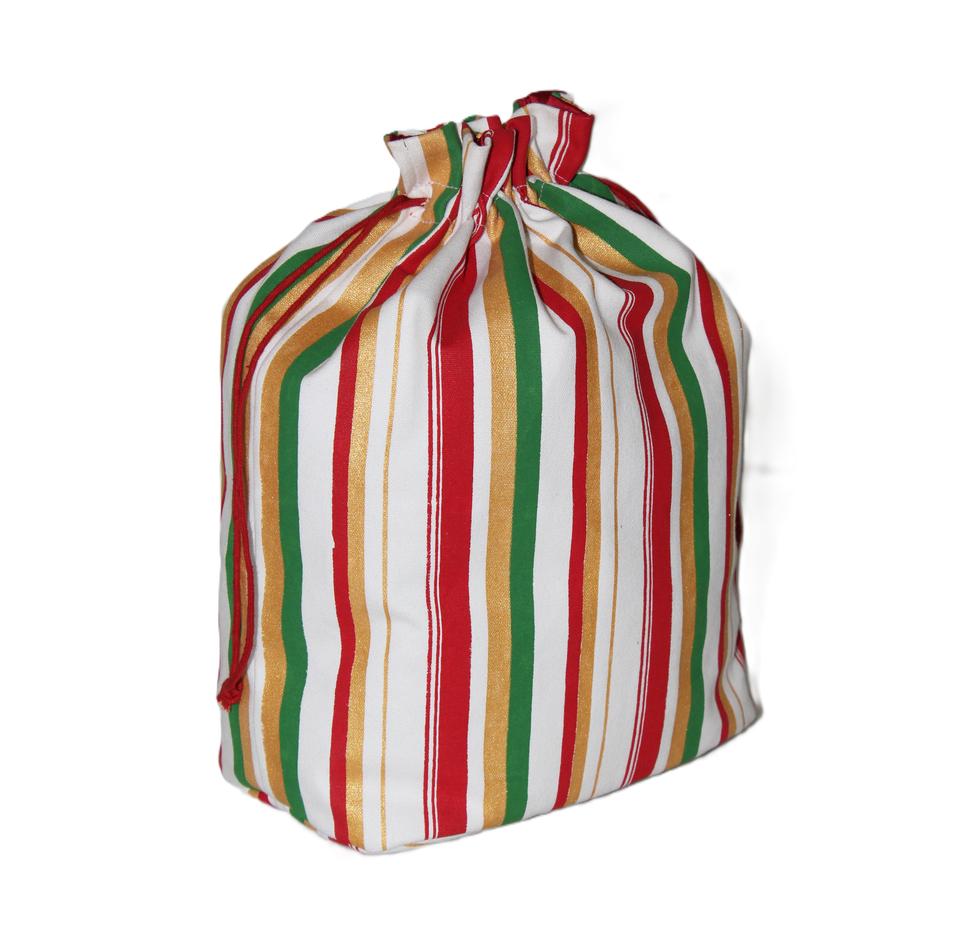 Christmas Drawstring Bag 12 Oz Washed Canvas Fabric with Multi Color Stripe Print Luxury Look Drawstring Gift Bag for Xmas