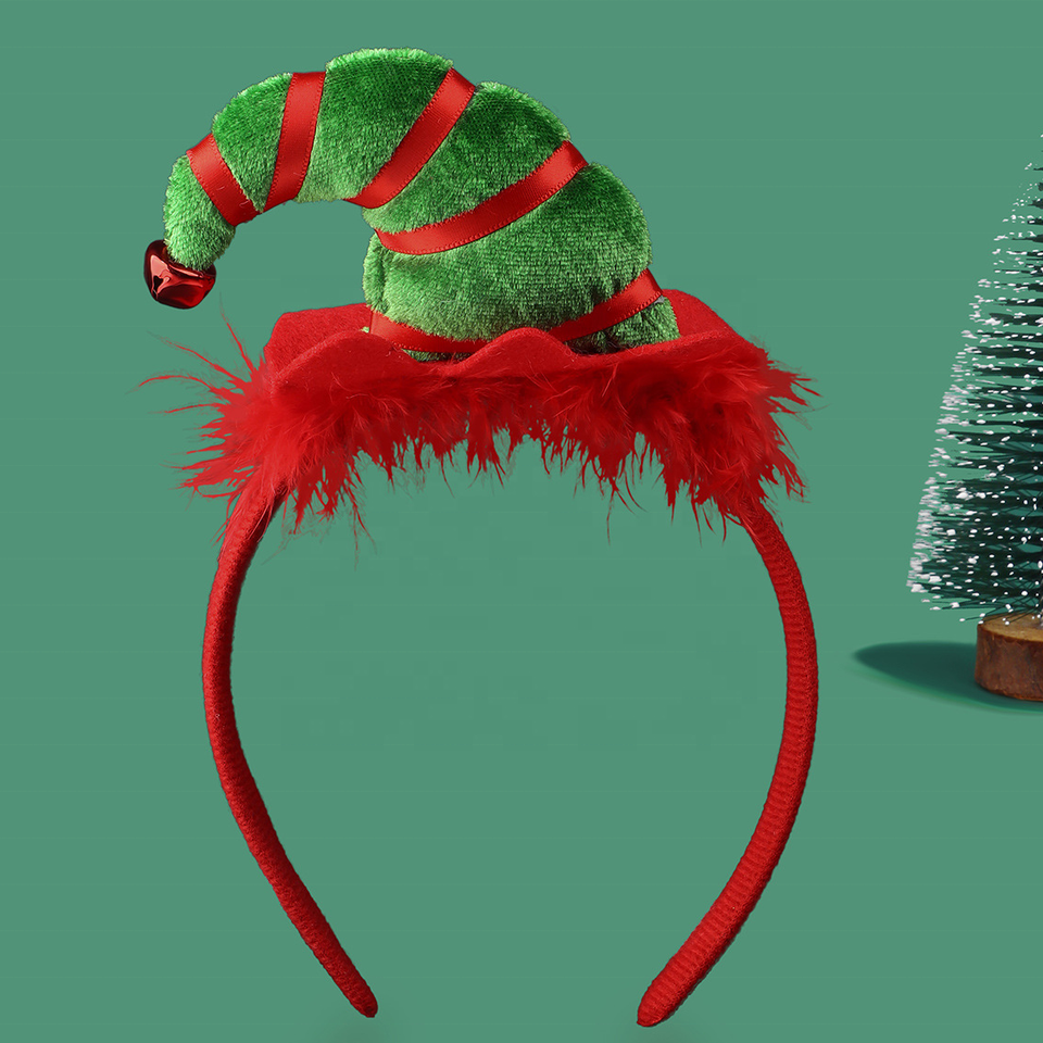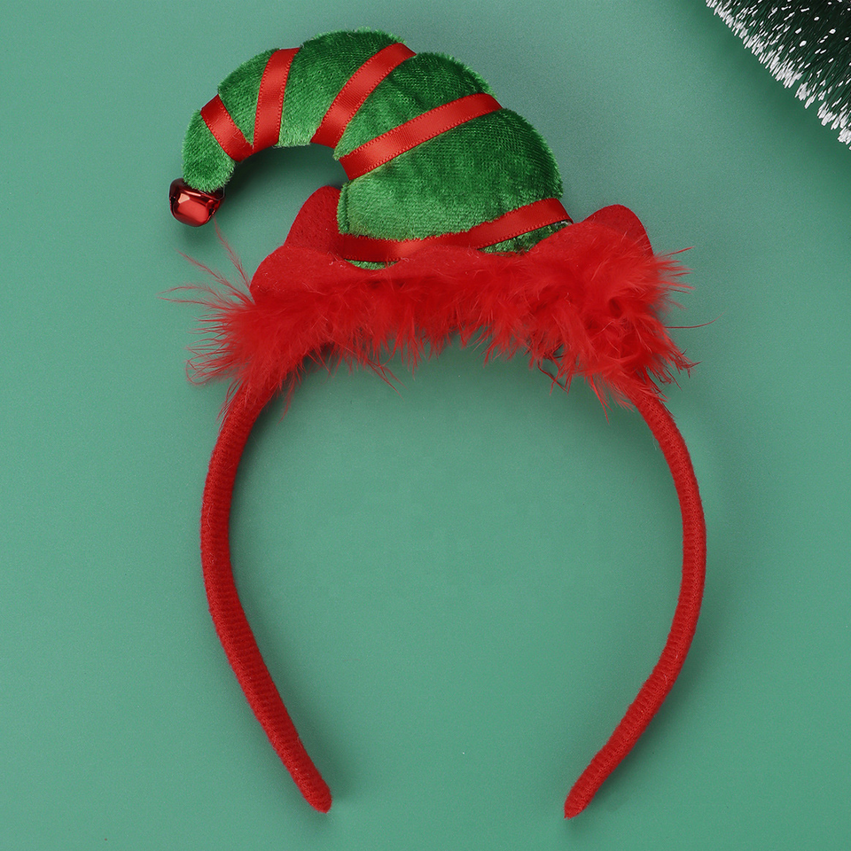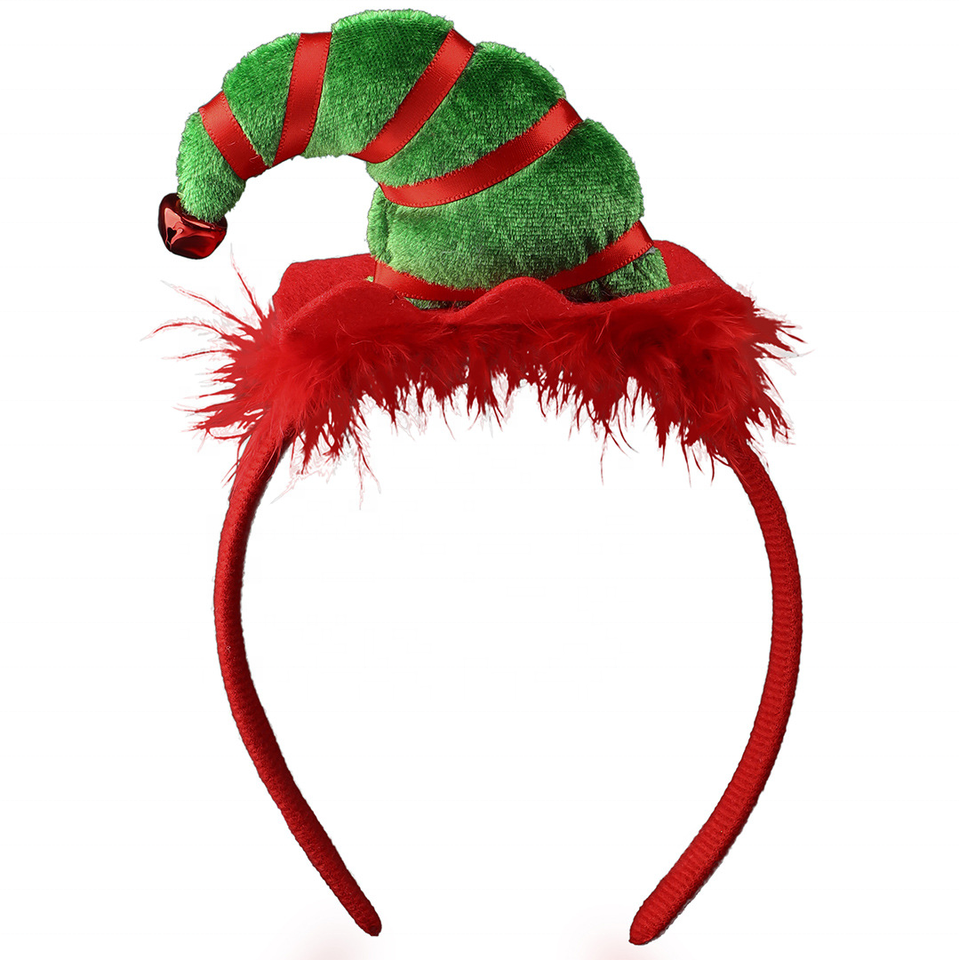 Christmas Elf Headband Funny Red Green Horn Headwear for Kids Plush Fabric Sweet Cartoon Christmas Festive Party Headdress Hair