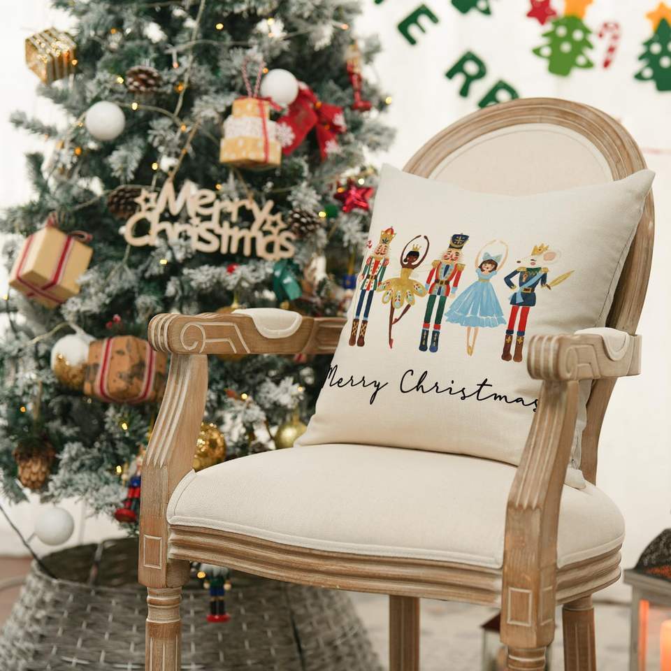 Christmas Farmhouse Buffalo Plaid Pillow Covers 18x18 Inches Red Black Throw Pillow Case Floral Pattern for Winter Decorations