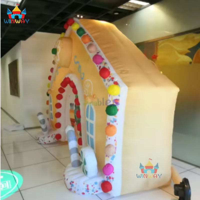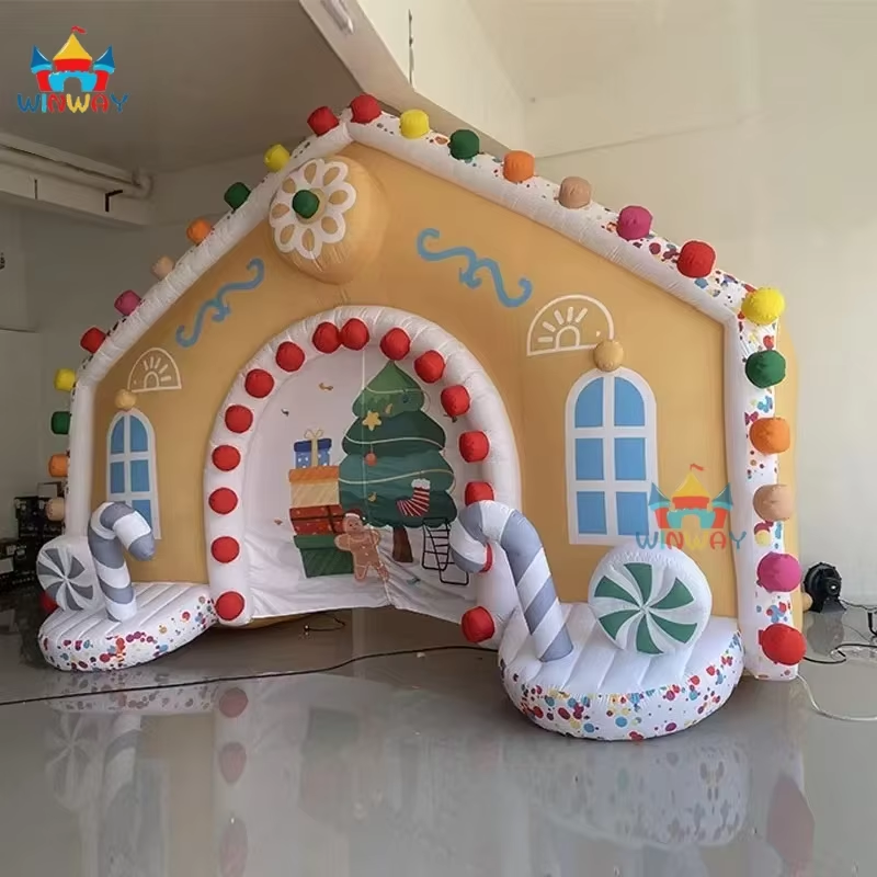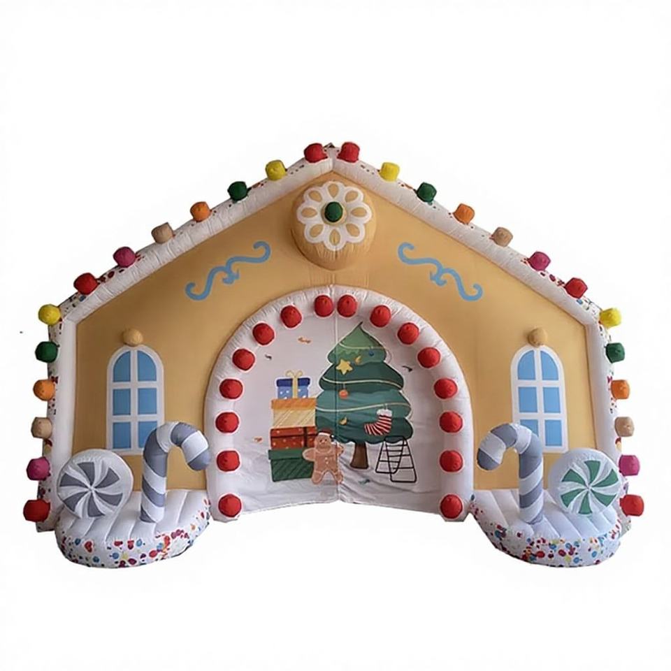 Christmas Festival Advertising Inflatables Giant Gingerbread House Candy Arch with PVC Material Easy Setup for Home Decoration