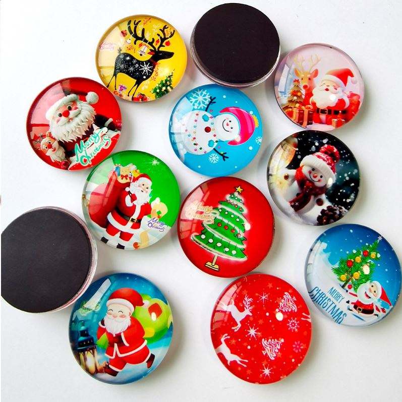 Christmas Fridge Magnets-Glass Round Refrigerator Magnets with Santa-Custom Brand Model 1010 Promotional Gifts for Holidays