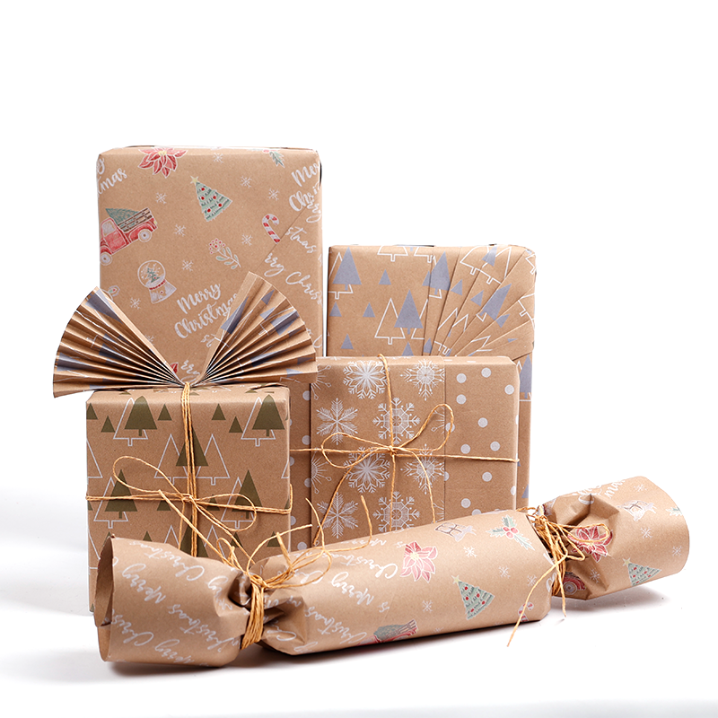 Christmas Gift Wrapping Paper 43 *1000 cm Kraft Paper Double Side Printing Wrapping Paper Packaging
