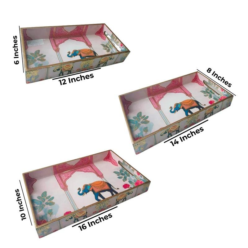 Christmas Gifts MDF Nesting tray Set Enamel Floral Print For Home Decor Breakfast Wedding & Housewarming Decorative Tray Set