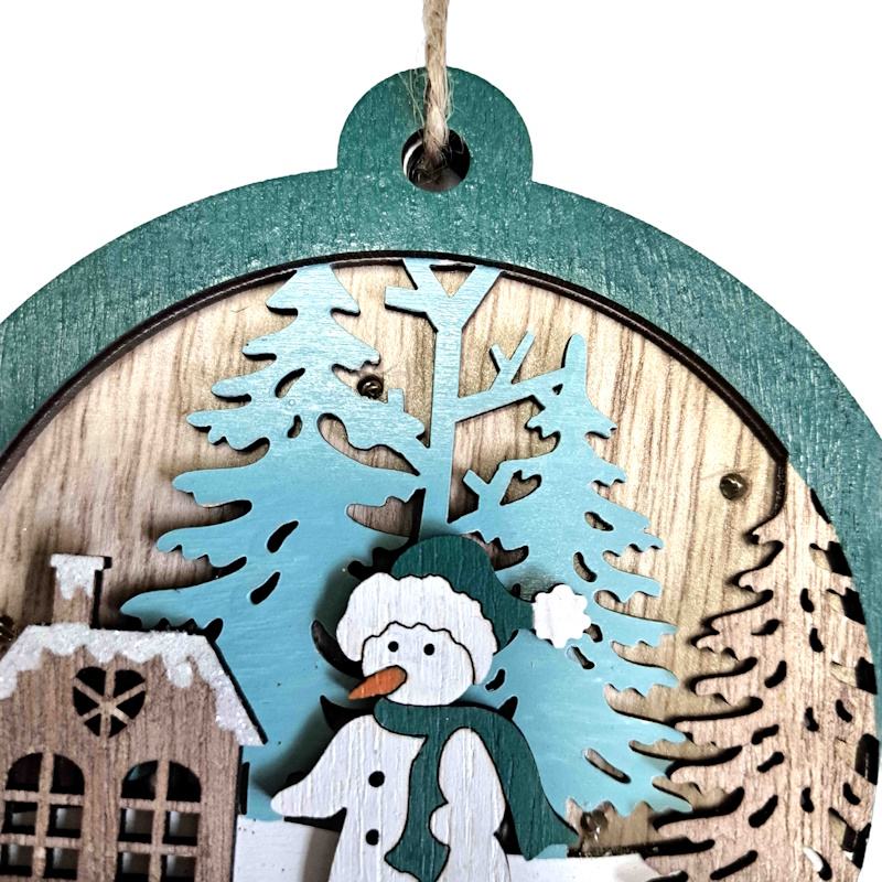 Handcrafted Wooden Santa Snowman Ornament Light-Up Round Shape Hanging Decoration for Christmas Holidays