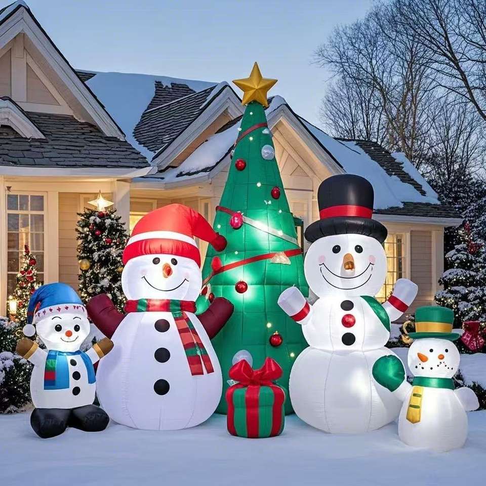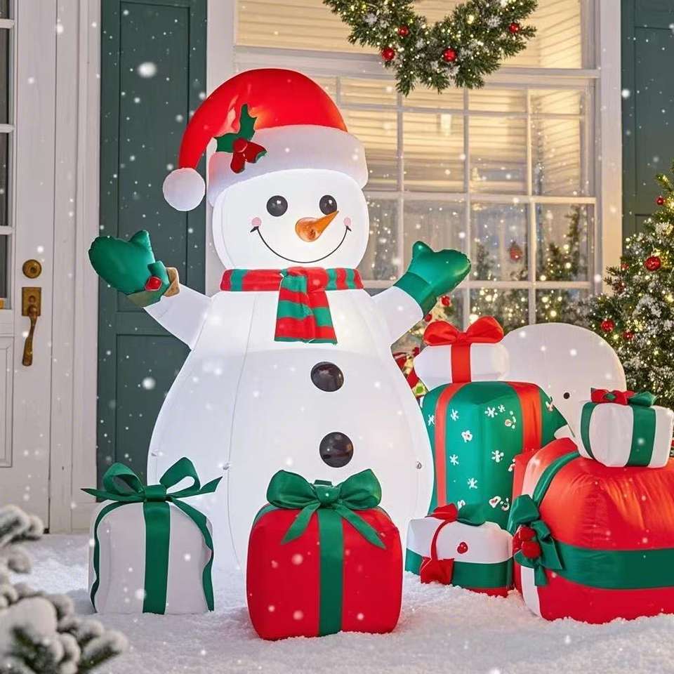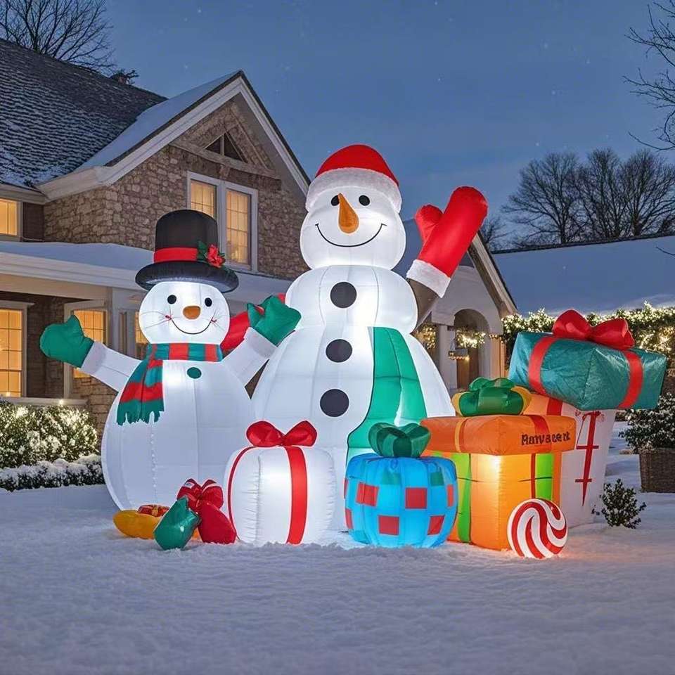 Christmas Inflatable Snowman With Gift Box Design LED Illuminated Holiday Decor For Garden Home And Commercial Use