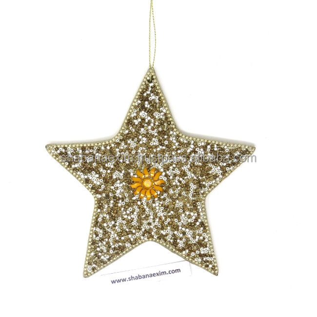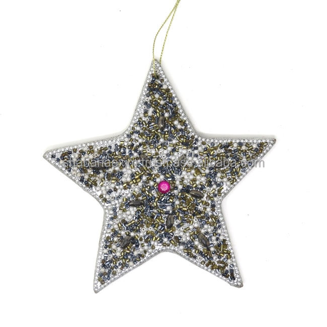 Beautiful Brown & Black Glass Seed Beaded Christmas Tree Hanging Ornament Star Shape Souvenir Table Decoration Ball Ornament