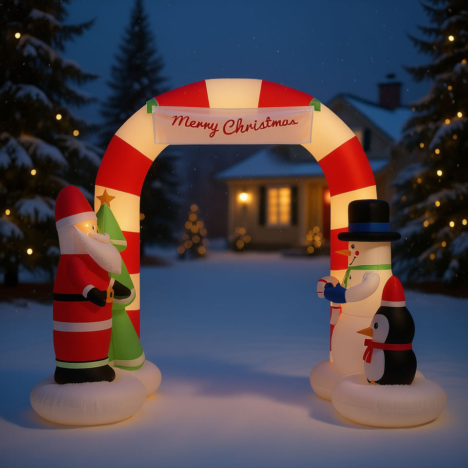 Inflatable Santa Snowman Arch Gate 102.4 In Outdoor Christmas Yard Decoration PVC Holiday Decor