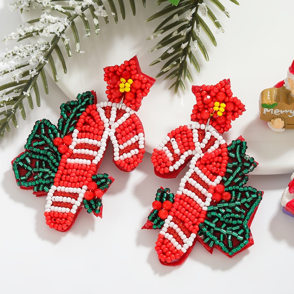 Christmas New Style Handmade Rice Beads Earrings Bohemian Style Letters Christmas Tree Bells Merry Christmas Cane Candy Earrings