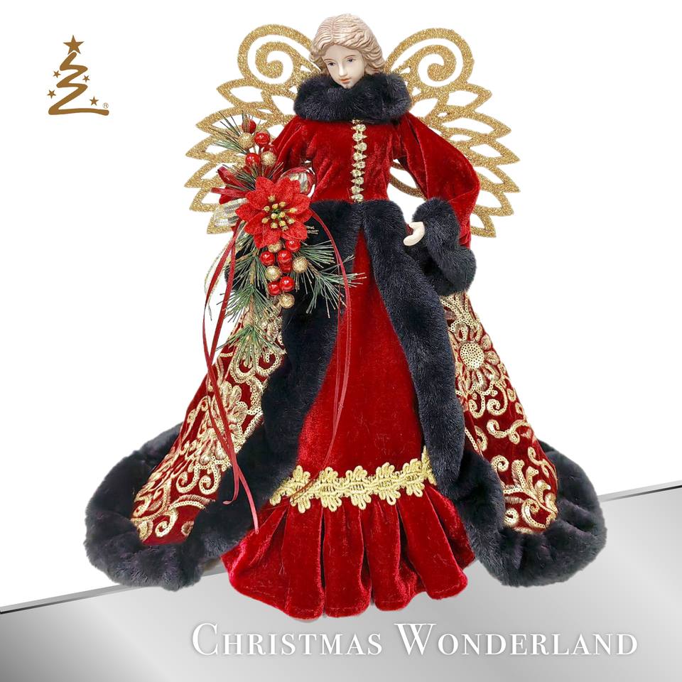 Christmas/New Year Decoration Burgundy Red Fabric Angel Tablepiece Treetop