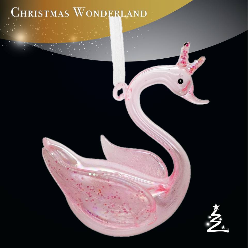 Christmas New Year Decoration Glossy Light Pink White Glass 3D Swan Ornament