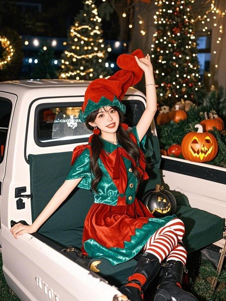 Christmas Party Child and Adult Women Cosplay Dress Red Velvet Santa Claus Costume Set With Hat and Cloak Carnival Stage Clothes