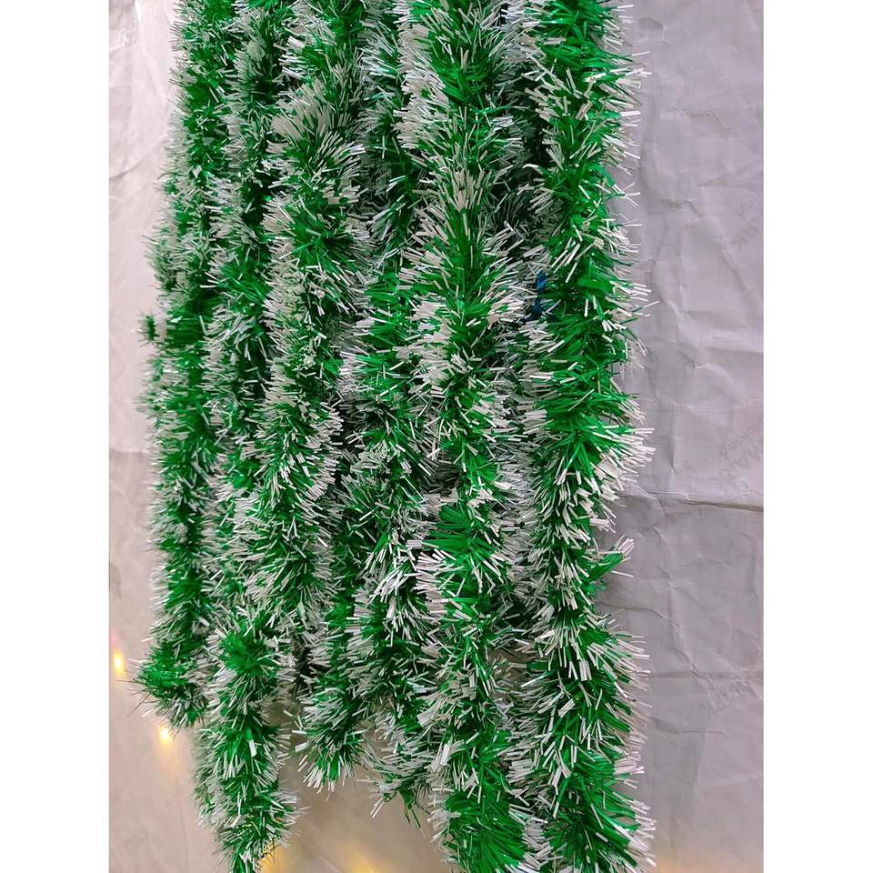 Christmas Party Decor Green & White 5.5ft PVC Tinsel Garland Shiny Metallic Twist Hanging Tree Decor Pack of 5