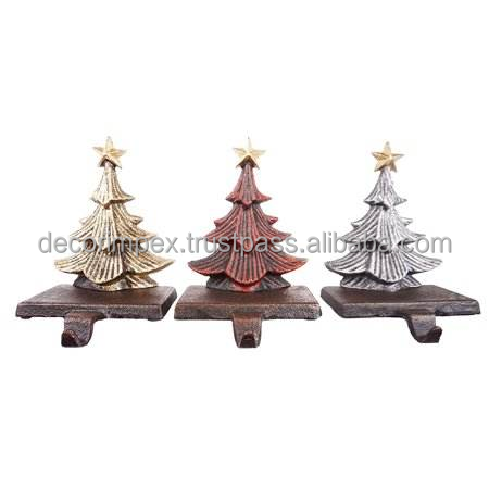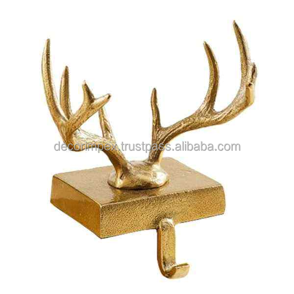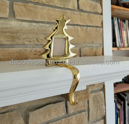 Christmas Party Ornament Bow Shape Gold Polished Metal Christmas Stocking Holder for Home Holiday Decoration
