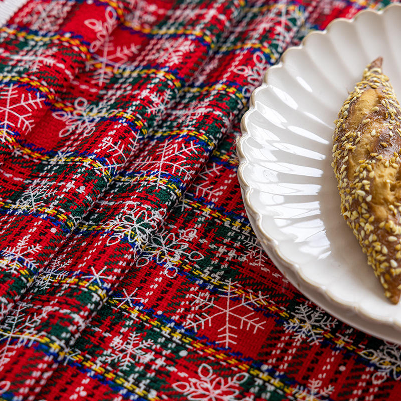 Christmas Red Plaid Tablecloth Printed Snowflake Pattern Polyester Washable Home Decor Rectangle Shape