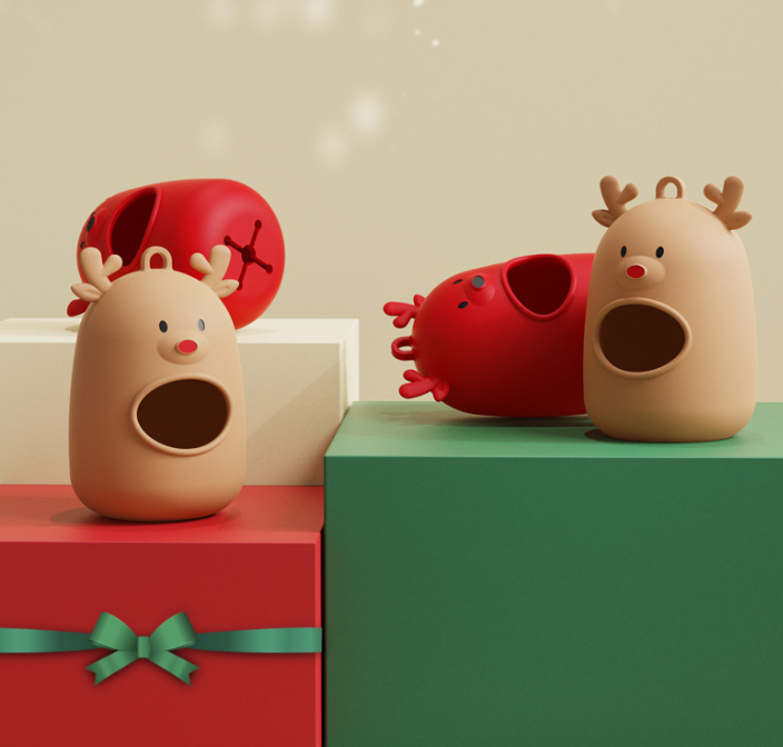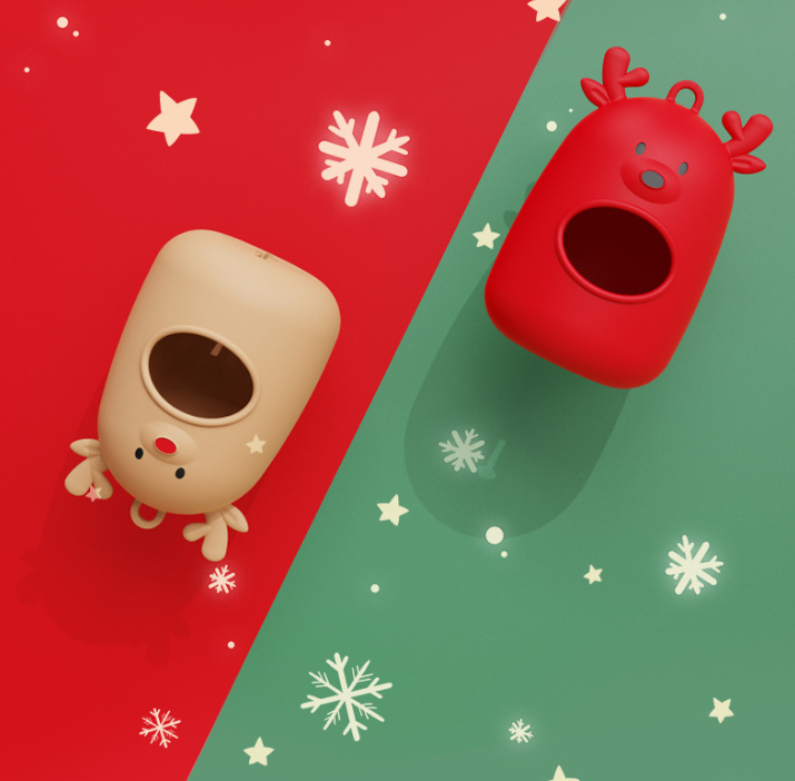 Christmas Reindeer Silicone Washable Biodegradable Pet Waste Bag Holder | Cute Portable Dog Poop Bag Dispenser for Walking
