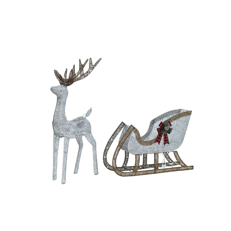 Christmas Reindeer Sleigh Decoration Metal Outdoor Indoor Holiday Decor Traditional Style Boxed Packaging
