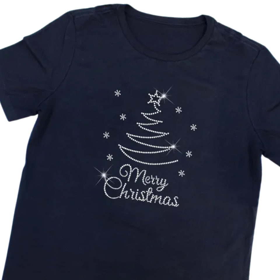 Christmas Rhinestone T Shirt Merry Christmas Tree Design Bling Crystal Custom Logo Festive Holiday Fashion High Quality Casual